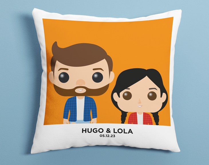 • Cojín personalizado de 40 cm x 40 cm. • Relleno incluido. • Tarjeta recordatoria.