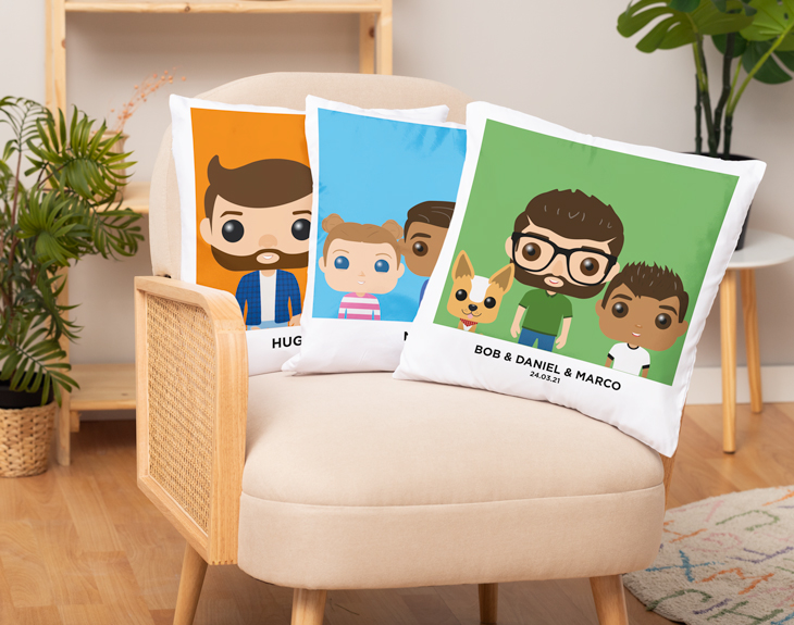 ¿Se acerca el Día del Padre? Si todavía no tienes un detalle con el que sorprenderle, nosotros tenemos el mejor regalo que puedes hacer. Se trata de nuestro cojín personalizado con diseño "Padre Tinok". Es genial para demostrarle lo mucho que lo quieres y lo mucho que aprecias todo lo que hace por ti. ¡Le encantará! Lo más especial es que podrás representar a los miembros de familia en forma de Tinok. ¡Es genial! Y es que este cojín es personalizable. Hay un montón de rasgos y accesorios disponibles para elegir, seguro que consigues representar a cada miembro de tu familia. Además, este cojín le dará un toque mucho más personal y acogedor al salón de tu casa. Personalizar este cojín es súper sencillo. El primer paso a seguir consiste en añadir el producto al carrito y entrar al área de personalización. Una vez ahí, ya puedes crear a estos avatares Tinok desde cero, ¡ya verás que divertido! Pronto estará perfecta y lista para regalar. ¡Será un original regalo para padres!