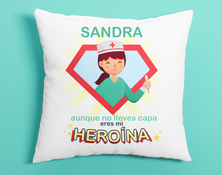 ¿Tienes cerca a una enfermera y quieres darle una bonita sorpresa para agradecerle todo lo que hace por los demás? Y es que, son las encargadas de cuidarnos a todos y velar por nuestra salud. ¿Qué sería del mundo sin las súper enfermeras? Por eso, si quieres sorprender a tu enfermera favorita, este cojín personalizado tiene su nombre. Y es que, con todo lo que hacen por nosotros, se merecen todo y más. Así que ha llegado el momento de que ellas sean por primera vez las cuidadas y mimadas. ¿Y qué mejor que con un regalo original como este? Basta con que nos digas su nombre y podrás hacer el mejor detalle de todos. Además, seguro que le viene genial para echar una cabezadita entre guardia y guardia. ¡Estará deseando llevarlo al trabajo y enseñárselo a todos sus compis! ¡Será la envidia del hospital!