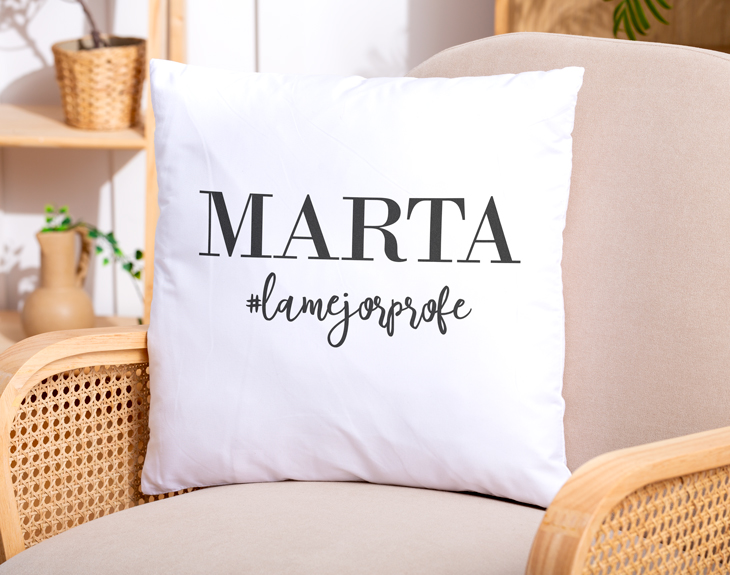 Se acerca fin de curso y eso significa despedirse por unos meses de nuestros compis, de las clases y también de nuestros profes. Si durante este año habéis tenido al mejor profe del mundo y queréis que lo recuerde siempre, la mejor forma de que nunca lo olvide es con este cojín personalizado. Cada vez que llegue a casa le encantará descansar sobre este precioso y cómodo cojín y además se acordará de la clase tan guay que ha tenido durante un año entero. ¡Será el mejor regalo del mundo! Un buen profesor es aquel que se preocupa por todo sus alumnos, que les enseña todo lo que sabe y que tiene toda la paciencia del mundo en cada clase que imparte. Y como sus días son iguales de bonitos y agotadores, se merece que le regalen este original cojín con un diseño súper guay y divertido y con el que se acordará siempre de lo que mola ser profe. Además de ser un regalo genial este cojín es muy cómodo y perfecto para descansar siempre que lo necesite. ¡Seguro que le encanta! Dile a tu profe que es el mejor personalizando tu propio cojín. Añade el producto al carrito y comienza a crear tu diseño. En la plantilla que te dejamos, solo tendrás que escribir su nombre en la parte de arriba y hashtag con la frase que quieras en la parte de abajo. Inspírate en nuestra foto o deja volar tu imaginación y escribe lo más bonito que se te pase por la cabeza. ¡Un regalo único para todos los profes del mundo! Pero si este diseño os ha gustado, podéis elegir el pack que incluye cojín y taza personalizados. Es perfecto para regalar a vuestro profe en este fin de curso. Tendrá estas dos cosas con el mismo diseño y harán que sus días sean mucho más divertidos. ¡Se acordará siempre de todos sus alumnos!