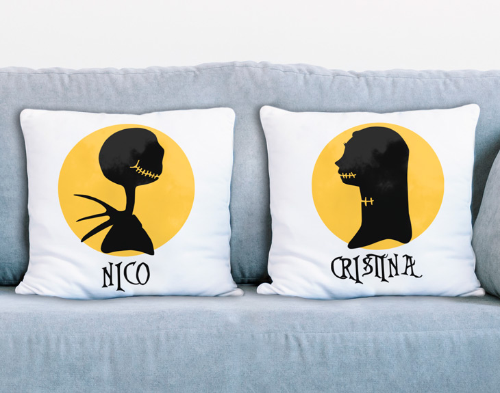 El amor no tiene límites, de ningún tipo. ¿Cuántas veces te has enamorado de una persona que no tenía nada que ver contigo? ¿Cuántas veces has pensado "yo con ese chico o esa chica no saldría seguro" y acabas enamorándote de esa persona? Si tu relación sentimental es muy parecida a la de Jack y Sally de Pesadilla antes de Navidad, este cojín personalizado es perfecto para ti. Dinos los nombres para personalizar los cojines y dale una sorpresa a tu pareja. ¡Le encantará! Lo que Jack y Sally nos han enseñado es que después de la tormenta viene la calma. No importa si habéis pasado por un mal momento, porque lo que está claro es que estáis destinados a estar juntos. Dale esa sorpresa original a tu pareja y disfrutad de vuestro amor para toda la vida.