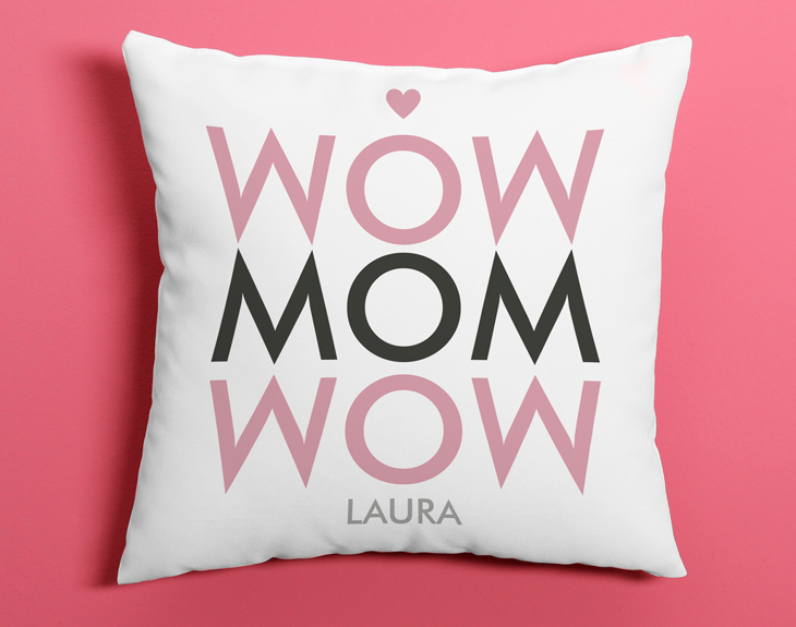 Las madres son ese tipo de personas que pueden hacer de todo: trabajar tanto dentro como fuera de casa, preocuparse por su familia, sacar un rato para jugar, escucharnos, apoyarnos y cuidarnos por encima de todo. Y es que a veces las madres parece que no son de este planeta. Este cojín personalizado es el regalo perfecto para decirle a mamá que tú también flipas con ella y con todo lo que hace. ¡Wow mom, wow! Ahora que se acerca el Día de la Madre, sin duda este original regalo es todo un acierto para sorprender a todas las mamis. Aunque también puede ser un detalle ideal para su cumpleaños o cualquier otra fecha especial porque se quedará sin palabras cuando lo reciba. Nuestro cojín, además de tener un diseño precioso, es súper cómodo, así mamá podrá descansar en él siempre que lo necesite. ¡Es lo más! Seguro que ya estás pensando cómo puedes personalizar este cojín para que sea único. Al entrar en nuestro diseñador, lo único que tienes que hacer es completar este diseño tan chulo con el nombre de mamá. Así todo el mundo sabrá que es su cojín. Ya solo queda que tu madre reciba este regalo tan especial que le hará emocionarse porque es súper guay. Pero si este diseño te ha gustado mucho, podrás elegir la opción del pack que incluye cojín y taza personalizados. Lo mejor es que podrás personalizar ambos productos con el mismo diseño y tener este pack tan genial para mamá. Porque si llevarse solo un producto está bien, imagínate poder llevarte dos. ¡Es genial!