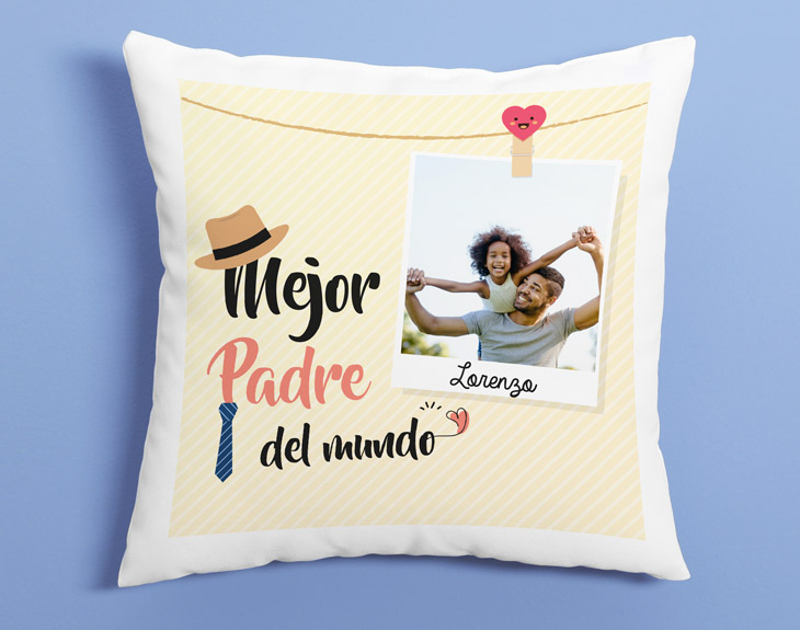 ¿Tienes un padre súper moderno? ¿Os encanta sacaros fotos y después colgarlas por toda la casa? Este cojín personalizado es perfecto para recordar todos esos buenos momentos que habéis pasado juntos. Dinos su nombre y elige la foto más chula y personalizaremos este cojín para que sea único y puedas sorprenderle en el Día del Padre. A partir de ahora será el cojín favorito de tu papá, con el que se echará la siesta y verá todos los partidos de fútbol.
