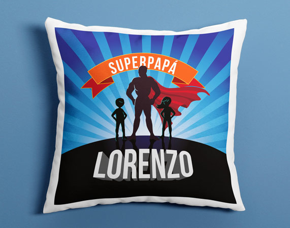 Si eres el afortunado que tiene un superpapá en casa, no puedes llegar al Día del Padre con las manos vacías. Este cojín personalizado es perfecto para sorprender al mejor padre del mundo en un día muy especial para él. Entonces, si tu papá te soluciona todos los problemas, si hace de chófer siempre que quedas con tus amigos o amigas, o si, simplemente, es el único que te entiende y te cuida al 100%, está muy claro de que es un superpapá. Dinos su nombre y elige el número de hijos y el sexo de cada uno para que podamos personalizar el cojín.