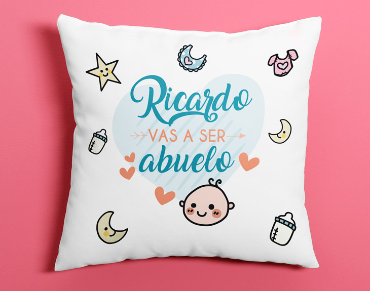 Una vez le digas a tu padre que vas a darle un/a nieto/a, ¡no podrá quitárselo de la cabeza! Por ello, le gustará ver todos los días ese fantástico mensaje de que va a ser abuelo. Dáselo de la manera más original y colorida con este cojín personalizado con su nombre. ¡Ahora siempre dormirá con él! Ya sea para tu padre o para tu suegro, puedes personalizar el cojín con el nombre que quieras. ¡Mira lo bonito que queda en la previsualización una vez lo añadas al carrito! Hemos creado este diseño especial infantil para que, cada vez que lo vea, piense en su nieto/a. ¡Soñará con ese futuro integrante de la familia! Sorprende a tu padre con el regalo original más cómodo y especial. Y si quieres completar el regalo para que también vea este mensaje cada mañana, añade la taza con este mismo diseño por tan solo 4 euros más. Importante: si eliges la opción que incluye taza, esta será de cerámica.