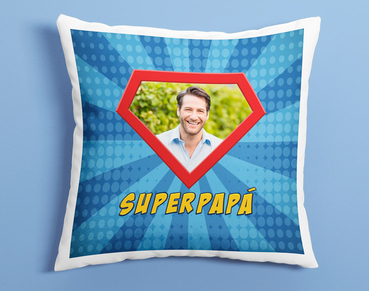 Llevas tiempo pensando en lo estupendo que es tu padre y ahora que tienes que regalarle algo, no sé te ocurre nada... todos los años le cae lo mismo y ya no puedes regalarle más corbatas o calcetines sin que te dé corte. Este año quieres hacerle un regalo original, que no se espere para nada, y que le haga sentir muy especial. ¡No busques más! ¡¡Tenemos la solución!! En nuestro equipo de diseño hemos preparado esta “super taza” para que puedas decirle que para ti es un referente y un héroe que puede con todo lo que se proponga. Nunca está de más agradecerle que no se perdiese ninguno de tus partidos y los chistes malos que dice después de cenar. Con este cojín personalizado podrás recordarle todos los días lo orgulloso que estás de él y sacarle una sonrisa cada vez que se tumbe. Para subir tu diseño tan solo tendrás que enviarnos una foto, puede salir él, los dos, o toda tu familia. ¡Como te guste más!