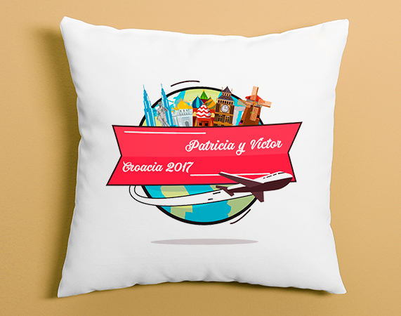 Entramos en verano con más energía que nunca. Con ganas de salir al mundo a triunfar y disfrutar de las vacaciones. ¿Ya tienes pensado a dónde te vas a ir este verano? Si ya tienes tu viaje planificado, y estás a puntito de hacerlo, ve pensando en el regalo de la vuelta. Seguro que el viaje es increíble, y ¿por qué no enmarcar el recuerdo de una manera muy original? Este cojín viaje por el mundo te permite diseñar con el texto que quieras. Regálaselo a tu chica, y empieza a decorar la casa con estilo.