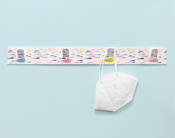 ¿Los animales siempre te han perdido? ¿Eras de los niños que suplicaban a sus papás para que trajeran un perro, gato o peces a casa? ¿Siempre has querido mascotas? Si los pececitos son tu perdición, este colgador de mascarillas personalizado está diseñado para ti y toda tu familia. Seguro que ya habéis tenido las primeras peleas con las mascarillas. ¿Tu hermano ha cogido la tuya sin querer? ¿Tu madre siempre pierde su mascarilla? Este colgador es perfecto para que todos en casa tengáis un sitio concreto para colgar la mascarilla. ¡No os volveréis a confundir más! El colgador tiene 4 soportes separados entre sí, con el fin de colgar todo tipo de mascarillas y evitar el contacto entre ellas. Es un regalo perfecto para el hogar, o para la oficina, por ejemplo. Si compartes mismo espacio con más personas y no sabéis dónde apoyar las mascarillas, este colgador os vendrá fenomenal. Incluye una tira adhesiva de doble cara en la parte trasera para fijar el colgador de manera extra fuerte en todo tipo de superficies. Material: PVC Medidas: 5,5 cm x 48 cm.