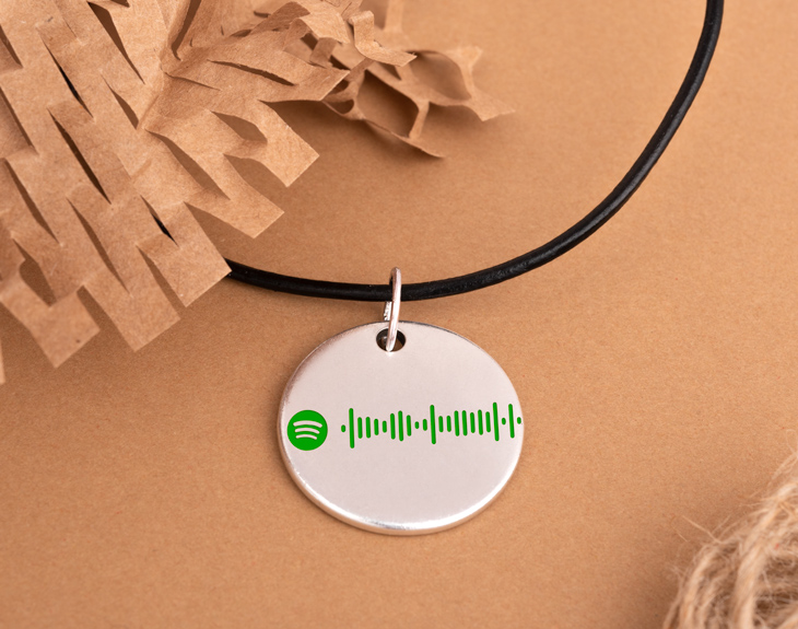 La música consigue crear lazos indestructibles y que estos se fortalezcan. Da igual si eres más de música clásica, pop, rock, reggaeton, o jazz. Cualquier canción que escuchemos en nuestro día a día puede hacernos sentir de una manera distinta. El tema adecuado puede conseguir sacarnos una sonrisa, o dejarnos aún más triste de lo que estábamos en un principio. Todos tenemos una canción que nos recuerda a una persona especial. Ese temazo que ha marcado tu relación de pareja, o esa canción que siempre cantáis tus amigos y tú cuando estáis de fiesta, son las que ponen banda sonora a nuestra existencia. ¿Te gustaría sorprenderles con un regalo musical y emocionante? El colgante personalizado "Código Spotify" hará que siempre te tenga en sus pensamientos. Este código sirve para escuchar esa canción en la aplicación de Spotify. Solo tendrás que entrar en la app, darle al icono de la cámara que encontrarás en el buscador... ¡y esa canción especial aparecerá en el reproductor! Podrás escoger cualquier temazo que se te ocurra, que tendrás que buscar en el buscador a la hora de personalizar este regalo original. Si quieres que tu amor siempre tenga vuestra canción encima, este colgante es el producto perfecto.