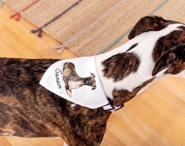 El collar personalizado más divertido para tu mascota. Si estás pensando darle una sorpresa a tu perro o a tu gato, y no sabes cómo hacerlo, enséñale un collar pañuelo con su foto, y seguro que se alegra. Verás como el paseo con tu mascota es mucho más divertido a partir de ahora. El perro estará más contento y ambos disfrutaréis mucho más. Elige la foto más divertida de tu mascota, y ríete con ella. Medidas: 44cm de largo máximo (sin contar las hebillas)