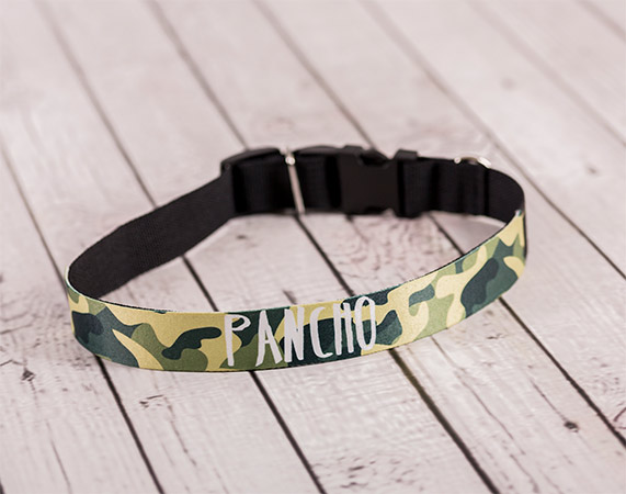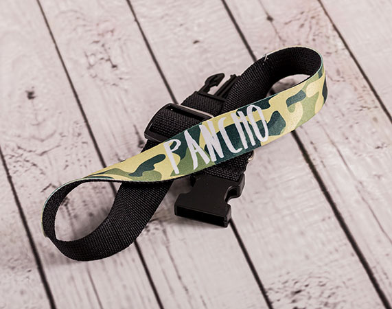 El collar personalizado para perros que estabas buscando. ¿Sueles ir con tu perro a cazar? ¿Te gusta la montaña y vas con tu perro siempre ha pasear? Este es el regalo original más divertido que le puedes regalar. Seguro que le encanta. Si hacéis todas estas cosas juntos, el diseño militar le tiene que gustar. Diviértete con él y sonríe más cuando le saques a pasear. Antes de pagar, te preguntaremos el nombre de tu mascota para personalizar al máximo el producto.