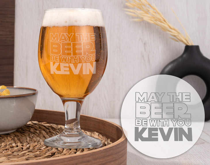 • Copa de cerveza grabada (400ml) • Tarjeta recordatoria.
