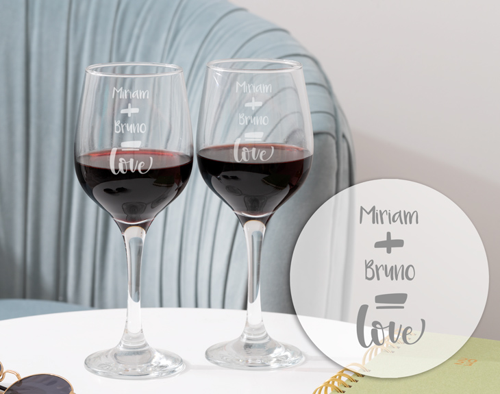 ¿Juntos sumáis uno? Si tu pareja y tú estáis hechos el uno para el otro y cuando os juntáis solo salen cosas buenas, esta copas de vino grabadas son perfectas para vosotros. Y es que, formáis la mejor definición de amor que se haya visto nunca, y por eso, este detalle es perfecto para agradecer a tu pareja toda la felicidad que te aporta. Y, ¿qué mejor que brindando con unas copas de vino? Basta con que nos digas vuestros nombres y podréis celebrar vuestro aniversario, el día de San Valentín o cualquier buena noticia de la mejor manera. ¡Le encantará! Medidas aproximadas: Diámetro: 6,5cm en la parte superior y 8cm en la parte inferior. Alto: 21cm Capacidad: 372ml