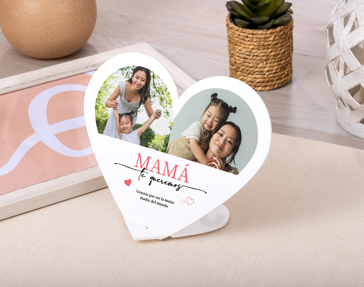 Si quieres sorprender a tu mamá con un regalo original y tierno, nuestro corazón personalizado flotante con diseño "Collage Mamá Elegante" es perfecto. Este precioso adorno está pensado para madres que disfrutan decorando su hogar con recuerdos familiares. ¡Le emocionará ver sus fotos más queridas transformadas en un corazón tan elegante y original como este! Este adorno exclusivo está fabricado en metacrilato blanco de alta calidad y consta de dos piezas en forma de corazón: una más grande, donde imprimiremos el diseño, y otra más pequeña que servirá de base para el corazón central. Al recibirlo, simplemente tendrás que colocar la base en el corazón... ¡y listo para regalar! Es el detalle ideal para ocasiones especiales como su cumpleaños o el Día de la madre! Personalizar este corazón nunca fue tan fácil. Solo tendrás que añadir el producto al carrito, acceder al área de personalización y elegir las dos fotos más especiales para ti. Además, podrás escribirle una dedicatoria que hará que tu mamá se derrita de amor. ¡Un detalle único y personal que no olvidará jamás! Tamaño corazón: 20 x 17,5 cm. Tamaño peana corazón: 10 x 8,8 cm.