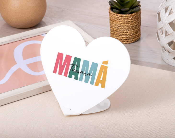 Las madres están en todos los detalles, ¿verdad? Si esta vez quieres ser tú quien la sorprenda, tenemos el regalo perfecto para ti. Se trata de nuestro corazón personalizado flotante con diseño "Mamá colorines", una opción única para su cumpleaños o cualquier ocasión especial. ¡Le encantará!. Lo que hace especial este adorno es que ¡es personalizable!. Junto a este precioso diseño, podrás escribir el nombre de la mejor mamá del mundo. Imagina la ilusión que le hará recibir este regalo tan original. ¡No podrá esperar para ponerlo en su salón y lucirlo con orgullo! Este adorno exclusivo está fabricado en metacrilato blanco de alta calidad y consta de dos piezas en forma de corazón: una más grande, donde imprimiremos el diseño, y otra más pequeña que servirá de base para el corazón central. Al recibirlo, simplemente tendrás que colocar la base en el corazón... ¡y listo para regalar! Personalizar este corazón es muy sencillo. Solo tendrás que añadir el producto al carrito, acceder al área de personalización y escribir lo que desees. Sin duda, será un original regalo para madres. Tamaño corazón: 20 x 17,5 cm. Tamaño peana corazón: 10 x 8,8 cm.