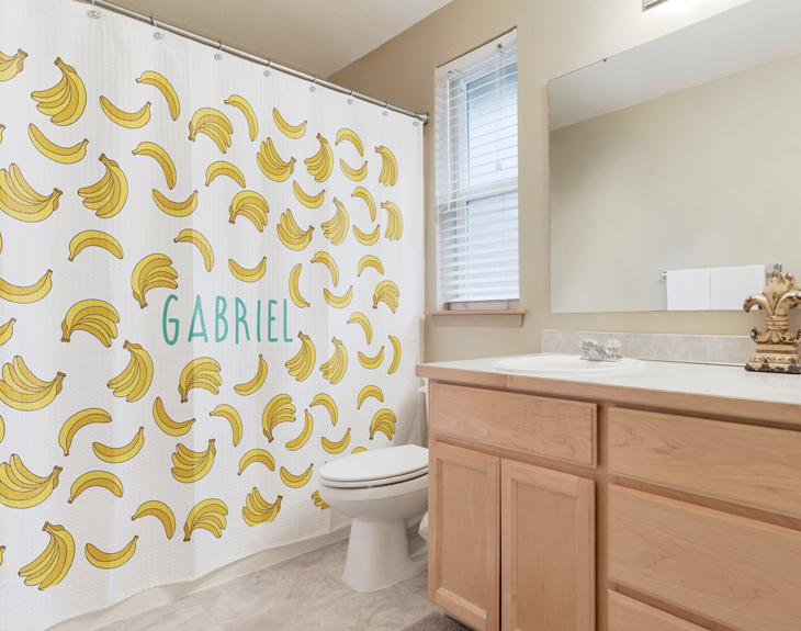 Una de las estancias de la casa donde pasamos más tiempo es el baño. Sí sí, has oído bien. Por las mañanas está muy solicitado porque todo el mundo quiere pasar a ducharse, lavarse los dientes, peinarse... Y como queremos que tengas el baño más guay del mundo, necesitas una cortina de baño personalizada tan guay como esta. ahora tu baño se verá diferente y muy divertido, porque con este pequeño cambio, le darás un toque único y que sorprenderá a todos los miembros de la familia. Esta original cortina puede ser el regalo perfecto para alguien que se acabar de mudar, para darle un toque único a tu baño o para personalizar el baño de los peques de la familia. Pero lo que más mola de esta cortina es que está llena de plátanos y destaca por encima de cualquier otro elemento del baño. Tus invitados y cualquiera que pase al baño se quedará sin palabras al ver esta súper cortina y querrán tener una igual, seguro. ¡Las duchas serán mucho más divertidas con esta cortina! Personalizar esta cortina es muy fácil. Añade el producto al carrito y entra en el área de personalización. Nosotros te dejamos el diseño para que tú solo tengas que completarlo con el nombre que quieras. Podrás previsualizarlo en todo momento para que veas como será el resultado final y cuando te guste, guárdalo y finaliza la compra. ¡Tendrás la mejor cortina de baño del mundo! Información sobre la cortina: - Tamaño: 180 cm x 180 cm. - Material: 100% Poliéster.