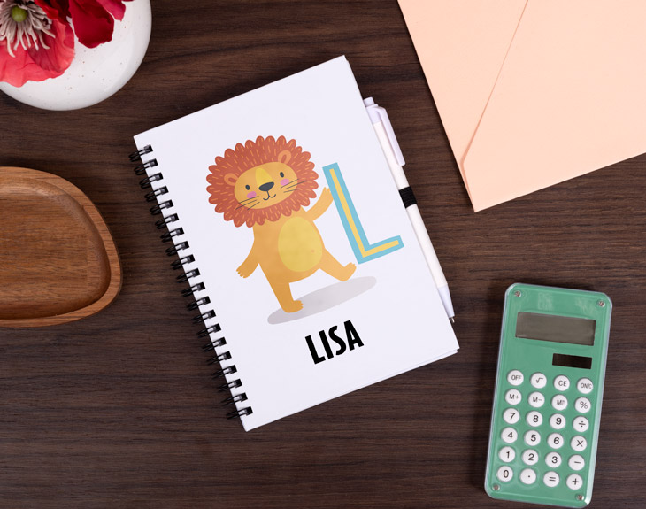 Cuaderno personalizado con la inicial de tu hijo o hija acompañada de su nombre y un divertido animalito. Será perfecto para la vuelta al cole, para actividades extraescolares o para cualquier otro proyecto en el que se necesite papel y boli. Disponible en cinco modelos, de diferentes tamaños y tipos de página. ¡Seguro que encuentras el que mejor se adapta a tus necesidades!