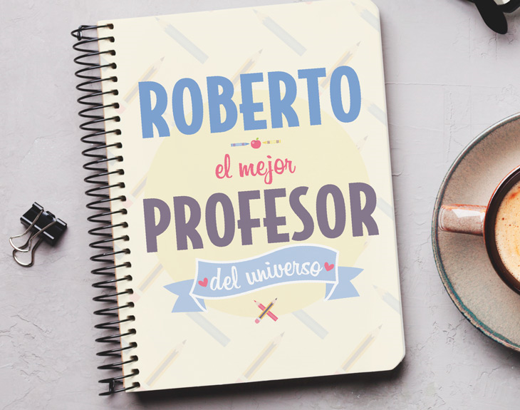 ¿Estás buscando cómo agradecerle a tu profe favorito todo lo que hace por vosotros? Este cuaderno personalizado es el regalo perfecto. Así vuestro profe tendrá un cuaderno muy original en el que podrá apuntar todas sus tareas. Si quieres hacer el regalo más especial, puedes pedirle a todos tus compañeros de clase que firmen el cuaderno. Seguro que a vuestro profe le hará mucha ilusión. Solamente nos tienes que decir el nombre del mejor profe del universo y nosotros lo pondremos en este diseño tan chulo. ¿No te parece un regalo súper original? Disponible en cinco modelos.