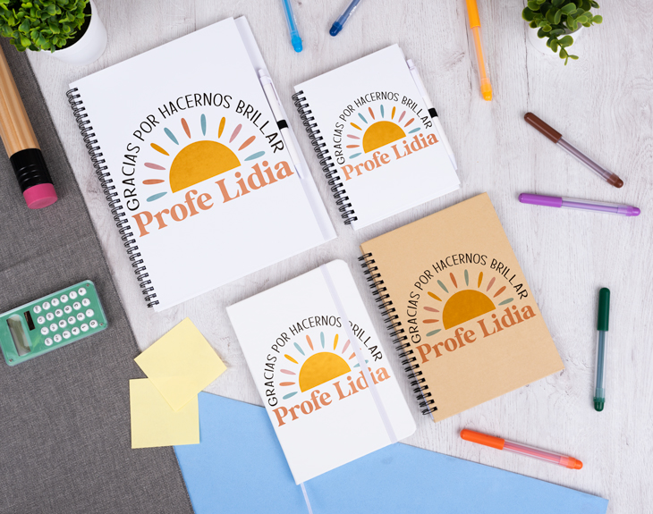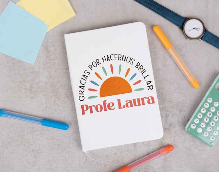 Si hay algo que los profes necesitan tener presente en todo momento es algo para poder apuntar todas esas cosas importantes y que no quieren olvidar. Por eso, tenemos el regalo perfecto para ellos: ¡su propio cuaderno personalizado! Si aún no sabéis que regalarle este fin de curso, sin duda, este es el mejor detalle con el que le podéis sorprender. ¡Se quedará sin palabras! Este original cuaderno se convertirá en su utensilio favorito del día a día porque podrán apuntar todo lo que quieran. Y como sabemos que hay tantos gustos como personas, podrás elegir el cuaderno que más se ajuste a las necesidades de tu profe. Elige si quieres el bloc de notas, el cuaderno ecológico, el cuaderno pequeño o el grande con tapa dura. ¡Podrás personalizar todos ellos! Llega el momento de personalizar este cuaderno para que sea el más guay del mundo. Elige el modelo que más te guste y añade el producto al carrito. Lo único que tendrás que hacer es completar este precioso diseño con el nombre de vuestro profe, ese que siempre os hace brillar. ¡Seguro que este regalo le encantará!