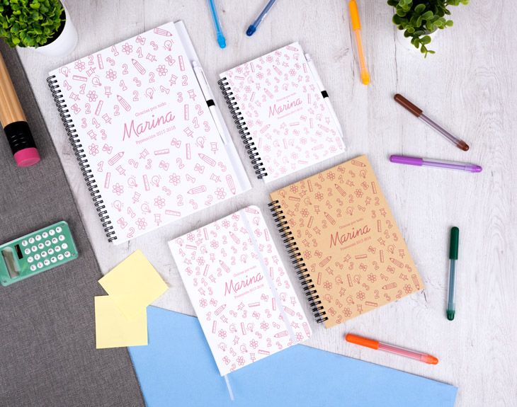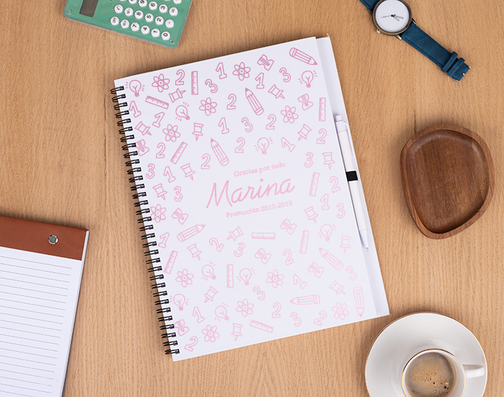 Paciencia, vocación, cariño, amor, conocimientos, enseñanza... Todas estas palabras y acciones forman al mejor profe. Si este año habéis tenido a un profe que lo ha dado todo y os ha enseñado un montón de cosas, se merece un regalo único como este cuaderno personalizado. Su diseño está hecho especialmente para todos los profes, por lo que este detallito es perfecto para agradecerle y reconocer todo el trabajo que ha hecho durante este curso. ¡Le encantará! Si tu profe es la típica persona que necesita apuntar todo en un papel para no olvidarse de nada, este original cuaderno será su mejor aliado. Podrá utilizarlo tanto fuera como dentro del colegio para escribir todo lo que necesite y siempre se acordará que fue un regalo de sus alumnos favoritos. Podrás elegir qué tipo de cuaderno quieres: bloc de notas, cuaderno ecológico, cuaderno pequeño o cuaderno grande con tapa dura. ¡Tú eliges! Además de elegir el tamaño, tendrás que personalizar este cuaderno tan guay para tu profe favorito. Elige qué cuaderno te gusta más, añade el producto al carrito y entra en el área de personalización. Selecciona que color te gusta mñas para este bonito diseño y después completa los cuadros de texto con lo que quieras. Colócalo para que quede perfecto y... ¡El mejor cuaderno del mundo estará listo!