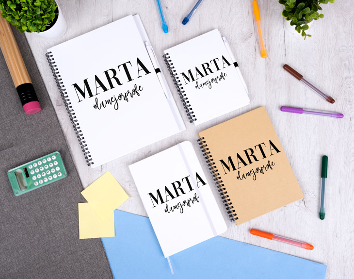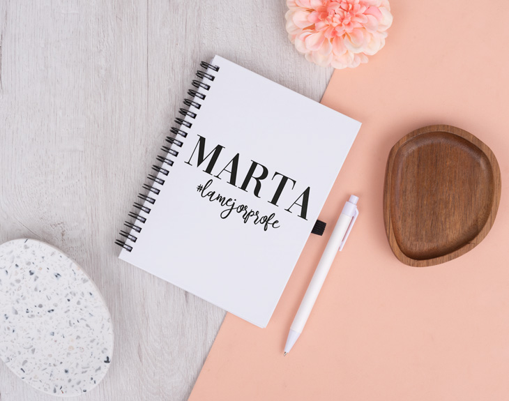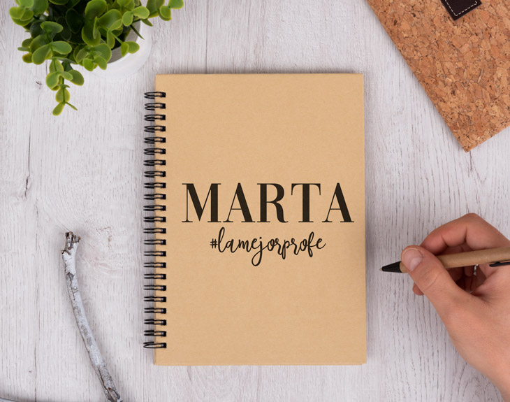 Hoy en día la tecnología nos acompaña a todos lados. Las redes sociales son una forma más de entretenimiento y de mantenernos informados. A pesar de que en las aulas y colegios se intente evitar, muchas veces la tecnología es necesaria. Si queréis sorprender a vuestro profe favorito con un regalo único y muy divertido, este cuaderno personalizado es perfecto. Con un diseño que hace un guiño a las redes sociales, cada vez que lo lleve al colegio, será el centro de todas las miradas. ¡Todos querrán uno igual! El último día de curso es el momento perfecto para agradecer a vuestro profe todo lo que se ha esforzado durante este año. Gracias a él, habéis aprendido un montón de cosas y vuestras notas son excelentes. Eso merece tener un regalo tan guay como este original cuaderno y su diseño que lo hace único. Es el detalle perfecto para ese profe al que le gusta apuntar todo en papel para que así no se le olviden las cosas importantes. Elige, además, el tipo de cuaderno que más te guste: bloc de notas, cuaderno ecológico, cuaderno pequeño o cuaderno grande con tapa dura. ¡Hay para todos los gustos! Pero esto no es todo, no te puedes olvidar de personalizar este cuaderno para tu profe favorito. Elige qué cuaderno te gusta más, añade el producto al carrito y entra en el área de personalización. Escribe le nombre de tu profe y utiliza el hashtag para decirle que es el mejor o lo que tú quieras, como si fuera un mensaje de una red social. Nosotros nos encargamos de que quede perfecto y listo para entregar. ¡Tendrá el cuaderno más especial del mundo!