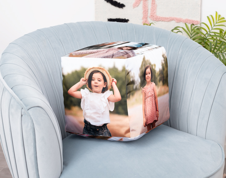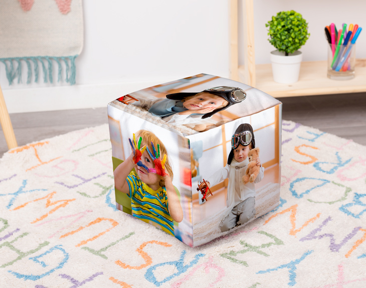 ¿Conoces a alguien que duerme siempre abrazando un cojín o un peluche? ¡Tenemos el regalo perfecto para ese tipo de personas! Se trata de un precioso cojín cubo personalizado con vuestras fotos favoritas, podrás incluir hasta seis, ¡una en cada cara! ¡Seguro que se convierte en su cojín favorito! Además, tiene forma de dado, así que podéis añadir en cada cara la foto de uno de vosotros y utilizarlo, por ejemplo, para repartiros las tareas de la casa, ¿no te parece una idea divertidísima? Ya sea con tu familia, o para llevar a un viaje con amigos, con este regalo original triunfarás. ¿Ya has pensado quién va a ser el afortunado o afortunada que reciba este detallazo? Es ideal para sorprender en un cumpleaños, para despedidas de solteros, o para dejar sin palabras a esa persona que tiene una colección enorme de cojines. Si tiene hasta el coche lleno de peluches, este detalle tiene su nombre. ¡Nunca antes habrá recibido un regalo tan original y divertido! Especificaciones: - El cubo cuenta con 6 caras. - Medidas: 25 x 25cm.