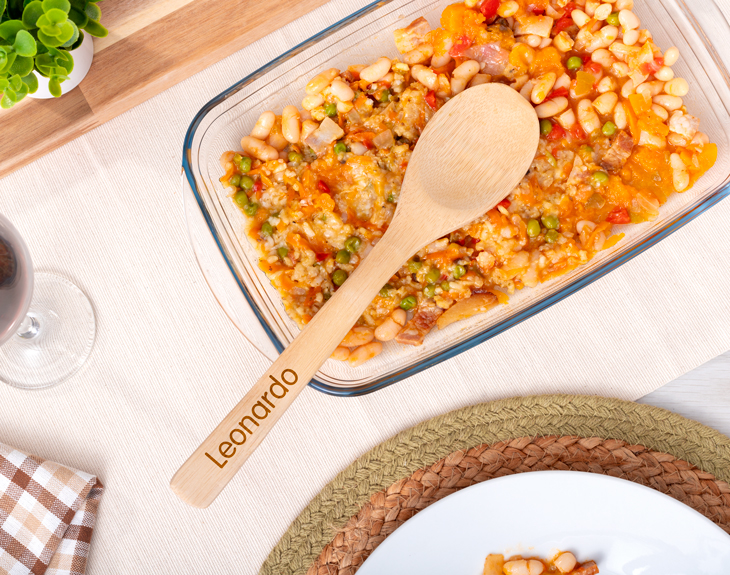 • Cucharón de madera grabado. • Tarjeta Recordatoria.