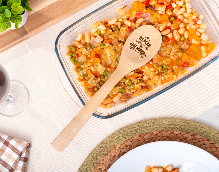 Da igual los platos que pruebes en cualquier sitio. ¡Nada como la receta de tu abuela! ¿Nunca supiste cuál es su secreto? Seguro que mucho amor y los mejores instrumentos de cocina. Si quieres ayudarla a que siga haciendo magia culinaria, haz que prepare sus platos con su propio cucharón de madera personalizado. ¡La mejor manera de decirle lo agradecido que estás por sus cuidados! Gracias a sus extensas dimensiones, podrá preparar las lentejas o judías que tanto te gustan sin quemarse. Cuando pruebe la comida con la parte honda, descubrirá su mensaje personalizado. Dinos su nombre y nosotros lo grabaremos a mano sobre la madera para que no se borre nunca. ¡Da igual lo caliente que esté la comida! Con muy poco esfuerzo, tendrás, un bonito y útil regalo original para abuelas. Si tu abuela pasa mucho tiempo en la cocina, alégrale el día a día con esta pieza de nuestros utensilios de cocina personalizados. Importante: el cucharón mide 30 cm de largo.