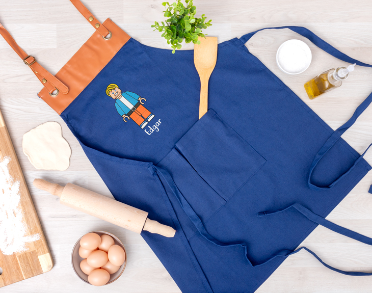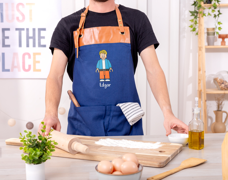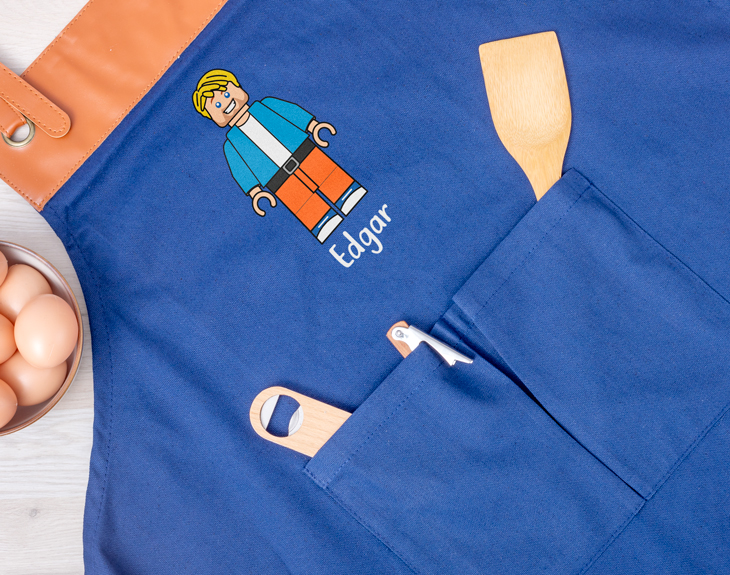 ¡Tenemos el detalle perfecto para cualquier cocinero! Nuestro delantal azul vintage es ideal para usarlo mientras cocinamos y así evitar manchas. Es de color azul y está fabricado de 100% algodón, tiene un estilo vintage de lo más moderno. Sorprende a ese cocinero tan especial con este detalle. ¡Es genial! Lo mejor de este delantal es que es personalizable, podrás crear a este avatar de Lego como tú quieras. Hay un montón de accesorios, rasgos y ropa diferente para que te puedas representar a la perfección. Imagina la ilusión que le hará recibir este delantal con su avatar personalizado, le encantará. Por último, personalizar este delantal vintage es muy sencillo. El primer paso a seguir consiste en añadir el producto al carrito y entrar al área de personalización. Una vez ahí, ya puedes crear a este avatar Lego desde cero como tú quieras. ¡Quedará genial! Pronto estará perfecto y listo para regalar. ¡Será un original regalo para cocineros! -Medidas aproximadas: 78x68cm Material: 100% algodón. Cintas de cuello y cintura de polipiel con ajuste de hebilla y remaches metálicos. Incluye multitud de bolsillos con costuras reforzadas. -Medidas aproximadas de la cinta del delantal vintage: 125 cm cada tira.