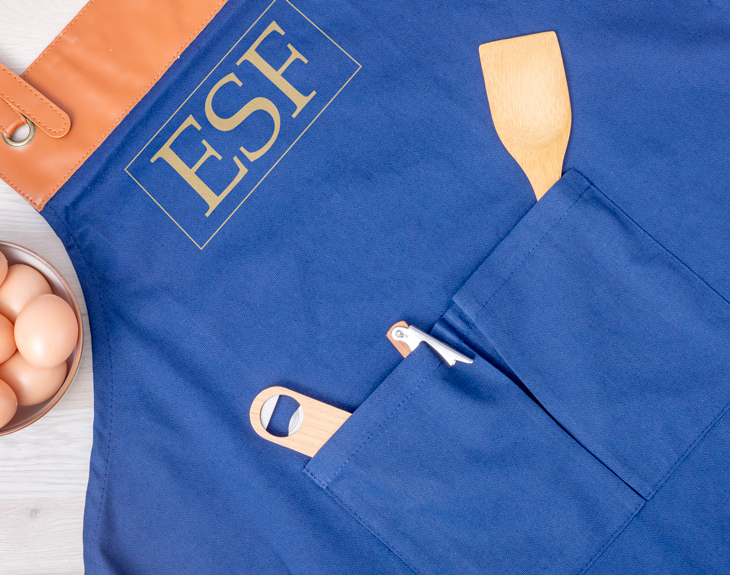 Seguro que tú también conoces a esa persona que adora cocinar, que siempre se curra un montón las recetas y le quedan unas comidas deliciosas. Si quieres tener un detalle con este chef tan detallista, tenemos el regalo perfecto. Se trata de nuestro delantal azul vintage con diseño "Iniciales", es ideal para evitar manchas mientras cocine. Lo mejor de este delantal de estilo vintage es que es personalizable, podrás escribir las iniciales del mejor chef del mundo. Imagina la ilusión que le hará preparar sus comidas con este delantal tan personal, sin duda, le encantará. Es el regalo ideal para cualquier ocasión como un cumpleaños, una amigo invisible o para Navidad. Por último, personalizar este delantal vintage es muy sencillo. El primer paso a seguir consiste en añadir el producto al carrito y entrar al área de personalización. Una vez ahí, ya puedes escribir las iniciales que tú quieras. Pronto estará perfecto y listo para regalar. ¡Será un original regalo para cocineros! -Medidas aproximadas: 78x68cm Material: 100% algodón. Cintas de cuello y cintura de polipiel con ajuste de hebilla y remaches metálicos. Incluye multitud de bolsillos con costuras reforzadas. -Medidas aproximadas de la cinta del delantal vintage: 125 cm cada tira.