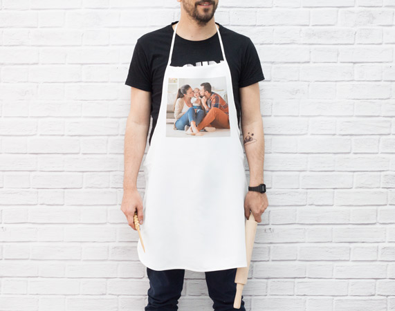 Cuando vaya a probar una nueva receta y se ponga su delantal, seguro que preparará el plato con más cariño y dedicación, si le recuerda quién le ha hecho ese regalo. Para ello, podemos, por ejemplo, personalizar el delantal con una foto de la familia o de su pareja. Si lo diseñamos con una foto del destinatario en plena labor de cocina, seguro que se sentirá todo un chef de alta cocina y estará mucho más motivado y animado para seguir con su hobby.