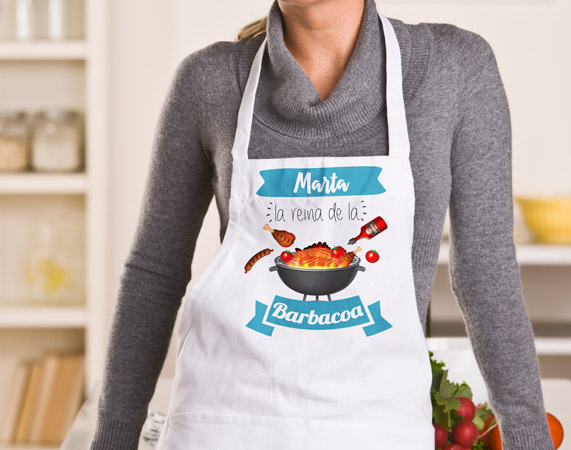 Seguro que tienes un amigo o una amiga que siempre está proponiendo planes, y su plan estrella es el de quedar todo el grupo y hacer una barbacoa. ¿Quién se encarga siempre de cocinar las chuletas y los chorizos? Ese amigo que tiene tantos planes. Pues ese amigo ahora puede tener un regalo original muy sorprendente. Este delantal personalizado es perfecto para verle sonreír y agradecerle todo el trabajazo de preparar una riquísima barbacoa. ¡Dale una sorpresa y personaliza el delantal con su nombre! -Medidas aproximadas Delantal de colores: 89x65 cm Delantal blanco: 84x57 cm -Medidas aproximadas de la cinta del delantal con foto blanco: 60 cm cada tira. Material del delantal blanco: 100% poliéster.