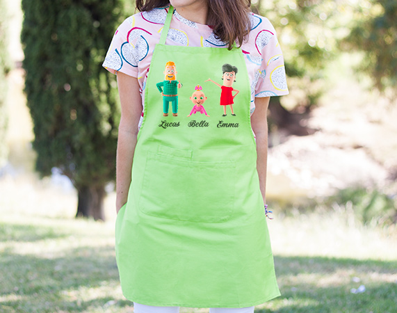 Elige hasta 8 personajes para personalizar nuestro delantal. La familia 3D está diseñada para las familias más divertidas. Tienes 3 colores de delantales para elegir el que más encaje con la persona a la que vas a alegrar el día con esta pedazo familia. Importante: a partir de 5 personajes, se distribuirán en dos filas. Es decir: - Familia de 5 personajes: 2 en la fila superior, y 3 en la inferior. - Familia de 6 personajes: 3 en la fila superior, y 3 en la inferior. - Familia de 7 personajes: 4 en la fila superior, y 3 en la inferior. Material del delantal blanco: 100% poliéster. Material del delantal de color: 65% poliéster, 35% algodón.