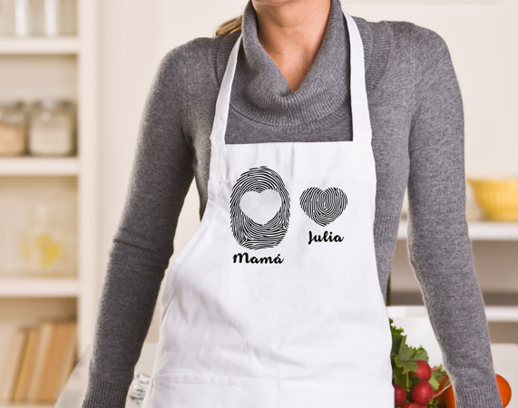 • Delantal de cocina personalizado. • Tarjeta recordatoria.