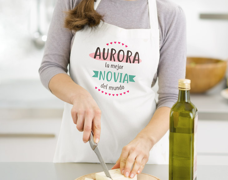 ¿Tu novia es la mejor cocinera del mundo mundial y además la mejor novia? Seguro que quieres tener un detalle súper especial con ella y darle todos los mimitos y el cariño que se merece. Nuestro delantal personalizado es un detalle perfecto si le encanta cocinar y se pasa el día entre fogones. Le hará un montón de ilusión tener uno tan chuli y que le ha regalado la mejor pareja del mundo. Es importante ser detallistas con nuestras parejas y hacerles regalitos de vez en cuando, sobre todo en fechas importantes como puede ser San Valentín o vuestro aniversario. Con este detalle le estarás dando un mensaje súper especial a tu novia: podrás escribir su nombre justo antes de "la mejor novia del mundo" para que se sienta como una auténtica privilegiada. Un detalle es un regalo muy original para evitarnos manchas no deseadas y además es un elemento muy útil a la hora de cocinar que a muchos de nosotros nos falta. Si quieres darle este regalo original a tu pareja simplemente tendrás que añadirlo al carrito y personalizarlo, antes de comprarlo y con nuestro diseñador podrás hacerte una idea de como va a quedar antes de terminar la compra. ¡Le encantará y lo usará siempre que vaya a prepararte una de esas cenas románticas que tanto os gustan! -Medidas aproximadas de la cinta del delantal con foto blanco: 60 cm cada tira. Material del delantal blanco: 100% poliéster.