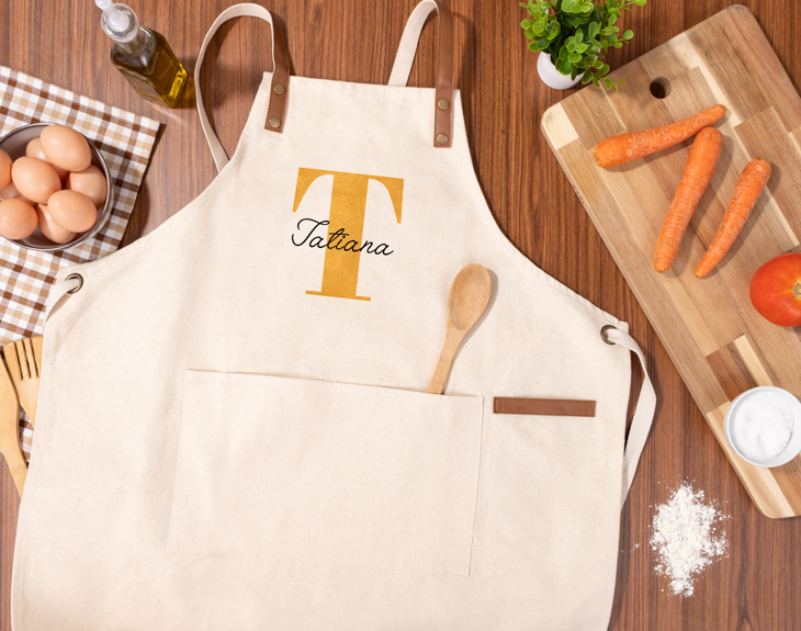 Sabemos que no a todo el mundo le gusta cocinar... Pero seguro que conoces a alguien que sea todo un experto haciendo las mejores recetas del mundo para cualquier ocasión. Y si no conoces a nadie, significa que esa persona eres tú. Por eso, para cocinar de la mejor manera posible, necesitas este delantal vintage personalizado. Es el accesorio perfecto para los más cocinitas del grupo de amigos o de la familia. Le encantará poder llevar en cada cocinado un delantal tan guay como este. ¡Es ideal! Si vas a pasar horas y horas entre los fogones de tu casa, requiere que tengas muchas ganas y amor por la cocina. Por eso, para recompensar a esa persona que da de comer a todo el mundo y te hace tus platos favoritos, hazle el mejor regalo del mundo: ¡nuestro original delantal! Pero no es uno cualquiera porque incluye pequeños detalles que lo hacen único. Es de color beige y parte de sus tirantes están recubiertos de polipiel marrón, que aporta una combinación perfecta. También podrás atarlo de manera muy original, como ves en la imagen, por la parte de atrás para que quede perfecto y se adapte a cualquier persona. Pero es que además, en la parte delantera cuenta con un amplio bolsillo para guardar lo que quieras. ¡Lo tiene todo! Para personalizar este delantal vintage sigue nuestros pasos porque es súper fácil. Añade el producto al carrito y entra en el área de personalización. Ahí puedes completar este precioso diseño que te dejamos, en el que podrás poner la inicial y nombre que quieras, además de elegir el color que más te guste. Será el mejor compañero del mundo para pasar los días en la cocina. ¡Es genial! Dimensiones: 75 x 65 cm (aprox). Material: 100% algodón. Cintas de cuello y cintura de algodón decoradas (en algunas zonas) con polipiel marrón y remaches metálicos.