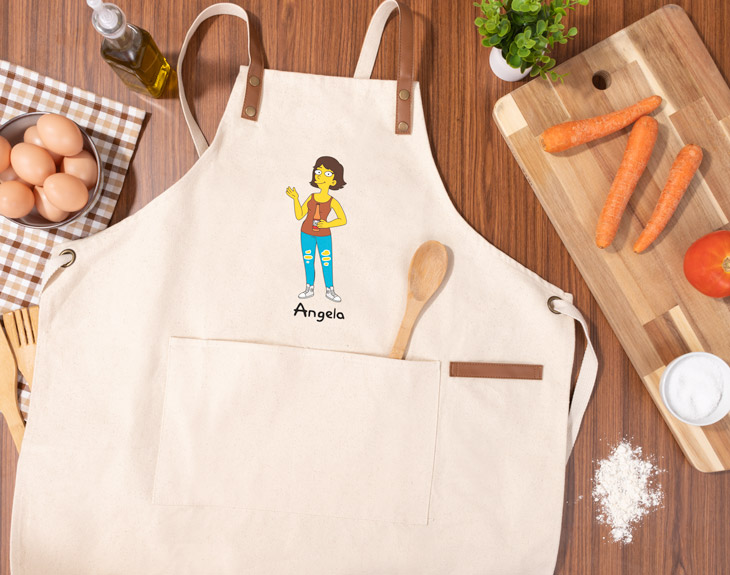 ¿Tú también conoces a ese amante de la gastronomía que adora cocinar? Si siempre hace unas comidas riquísimas y súper sabrosas, ¡ya es hora de agradecérselo! Este delantal vintage será el regalo perfecto. Es genial para que se lo ponga encima de la ropa mientras cocina, así no se manchará. ¡Le encantará! Si, además de cocinitas es un auténtico fan de Los Simpson, está claro que este delantal vintage está hecho expresamente para él. Porque el estampado que tiene es personalizable. ¡Tú creas a estos personajes Simpson tan chulos! Hay para elegir un montón de rasgos y accesorios, seguro que consigues que le represente. Sorprende a esa persona tan especial con este regalo tan original. Solo queda personalizar este delantal vintage. ¡Es súper sencillo! El primer paso a seguir consiste en añadir el producto al carrito y entrar al área de personalización. Una vez ahí, ya puedes diseñar a estos avatares desde cero. ¡Pronto estará lista para regalar! Pero no es un delantal cualquiera porque incluye pequeños detalles que lo hacen único. Es de color beige y parte de sus tirantes están recubiertos de polipiel marrón, lo que hace una combinación perfecta. Podrás atarlo de manera muy original, como ves en la imagen, por la parte de atrás para que quede perfecto y se adapte a cualquier persona. Pero es que además, en la parte delantera cuenta con un amplio bolsillo para guardar lo que quieras. ¡Lo tiene todo! Dimensiones: 75 x 65 cm (aprox). Material: 100% algodón. Cintas de cuello y cintura de algodón decoradas (en algunas zonas) con polipiel marrón y remaches metálicos.