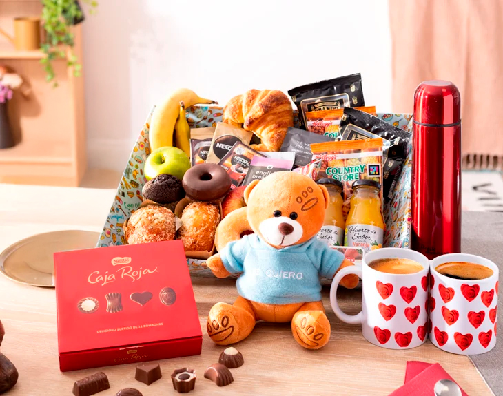Si es para 2 personas se duplica todo el contenido menos el termo, el oso y los bombones.