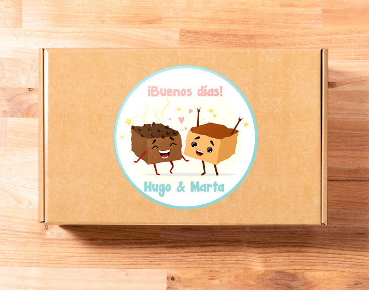 Contenido para 1 persona: • Caja (personalizada o sin personalizar). • Taza blanca (personalízala por 5€). • Manzana roja. • Café. • Té de varios sabores. • Zumo ecológico. • Bizcocho tradicional con superficie azucarada (dos unidades de 80g cada una). • Bizcocho de chocolate relleno de chips de cacao (dos unidades de 80g cada una). • Servilleta. • Tarjeta Recordatoria. Contenido para 2 personas: • Caja (personalizada o sin personalizar). • 2 Tazas blancas (personaliza cada una por 5€). • 2 Cafés. • Té de varios sabores. • 2 Zumos ecológico (Huerto de Sabor). • Bizcocho tradicional con superficie azucarada (dos unidades de 80g cada una). • Bizcocho de chocolate relleno de chips de cacao (dos unidades de 80g cada una). • 2 Aceites de oliva ecológicos 10 ml. • 2 cuberterías. • 2 servilletas. • Tarjeta Recordatoria. Las tazas y los termos personalizados reemplazarán a los del desayuno. ¿Cómo incluir los productos opcionales? Una vez hayas seleccionado el tipo de desayuno, en el apartado de adicionales (paso 2) podrás añadir todos los productos opcionales que quieras.