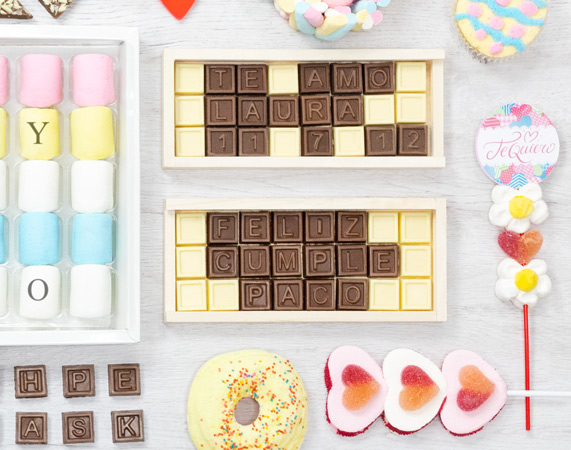 Estamos seguros de que tienes más de un amigo o amiga que les vuelven locos el chocolate, las chuches, las galletas… en definitiva el dulce. Para todas estas personas hemos creado una sección repleta de regalos originales hechos con productos de primera calidad y además, muchos de ellos personalizados.