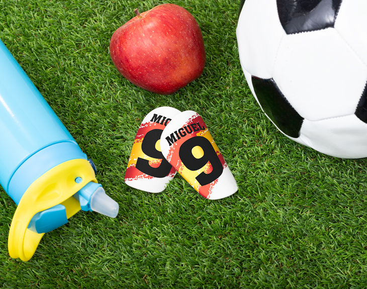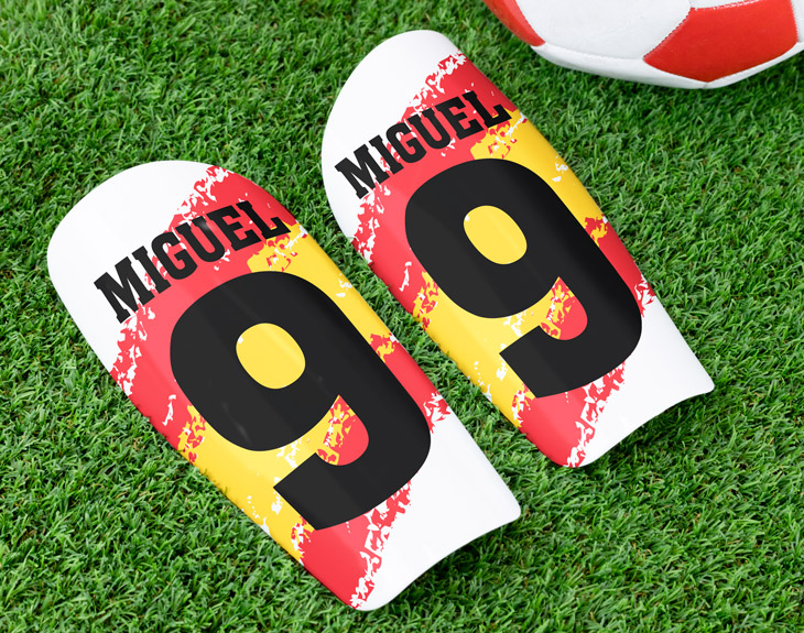 ¿Conoces a alguien que sigue todos los partidos de la Selección Española? Si días favoritos son los que hay Eurocopa y Mundial, estas espinilleras personalizadas tienen su nombre. Ahora cada vez que juegue al fútbol se sentirá como sus jugadores favoritos. Solamente tienes que decirnos el número que suele llevar en la equipación y su nombre. Una vez tengamos estos datos, los insertaremos en este diseño con la bandera de España. ¿Te imaginas la ilusión que le hará tener unas espinilleras así? Seguro que una vez las estrene se convierten en sus espinilleras de la suerte y no quiere jugar ni un partido más sin ellas. ¿A qué estás esperando para hacerle este regalazo? Tenemos cuatro tallas de espinilleras, te recomendamos ver la guía de tallas (un poquito más abajo si estás desde un móvil o a la derecha si estás desde un ordenador). El material de la espinillera es un variado de plástico polipropileno con terminación especial para sublimación, un material muy resistente y cómodo para quien las lleva. Sus principales características son: flexibilidad, ligereza y resistencia. Reverso de goma eva color negro. La espuma hace que las espinilleras sean agradables de usar y protegen aún más las piernas debido a que disminuyen el impacto de los golpes.