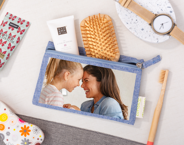 Durante las vacaciones, seguro que habéis creado momentos mágicos que os gustaría recordar durante todo el año. ¡Sobre todo cuando vuelve la rutina de Septiembre, que es cuando más falta hace! En esos meses, tanto adultos como niños, agradeceremos tener algunos de esos recuerdos impresos a todo color sobre este estuche de algodón reciclado personalizado. ¡Crea tu propio material escolar o de oficina con tus fotos, imágenes y texto! La tela de algodón está disponible en diversos colores a elegir. ¡El que más bonito quede con tu creación! Tendrás toda la plantilla rectangular con algunos márgenes para personalizar el estuche infantil de colores con foto y texto. ¿El rojo romántico con una foto con tu pareja? ¿El azul para la imagen de las últimas vacaciones en la playa? Todos los colores cubren el estuche al completo, hasta la zona de la cremallera. Aunque sea el mejor regalo original para la vuelta al cole, también es un fantástico complemento para guardar el dinero, maquillaje o en general para el trabajo y la oficina. En todos lugares, ¡te encantará tener la foto con tu familia o tus amigos de aquel gran viaje! Material: algodón reciclado. Medidas: 21x12,5 cm.