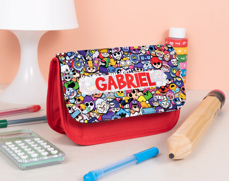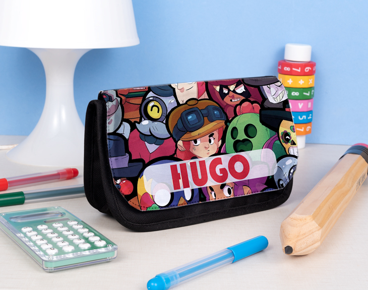 Cada día que pasa es un día menos para la vuelta al cole. ¿Ya tienes todo lo necesario para volver a la rutina? ¿Tu hijo ya está contando los días que faltan para reencontrarse con sus compañeros y con sus profesores favoritos? Si quieres tener un detalle con él para animarlo en esta nueva etapa, tenemos el regalo perfecto. Se trata de este estuche personalizado. ¡Se convertirá en su compañero de aventuras escolares! Además, si se ha pasado todo el verano enganchadísimo al videojuego Brawl Star, sin duda, este estuche está diseñado expresamente para él. Tiene un diseño inspirado en este juego, es un estampado collage que recoge a todos los personajes. Se puede elegir el color del estuche, tenemos azul, negro o rojo. Es ideal para que vaya siempre bien preparado a las clases. En este estuche puede guardar todo el material escolar necesario, como los lápices, la goma, los rotuladores o las pinturillas ¡Cabe de todo! Pero, sin duda, lo más especial que tiene es que es personalizable. Tú nos dices el nombre que quieras y nosotros lo plasmamos en este estuche tan chulo. Para personalizarlo, solo tienes que añadir el producto al carrito y entrar al área de personalización. En todo momento podrás ver cómo queda el estampado en la vista previa de nuestra web. ¡Perfecto para la vuelta al cole! Medidas: 20 cm x 12,5 cm x 6 cm