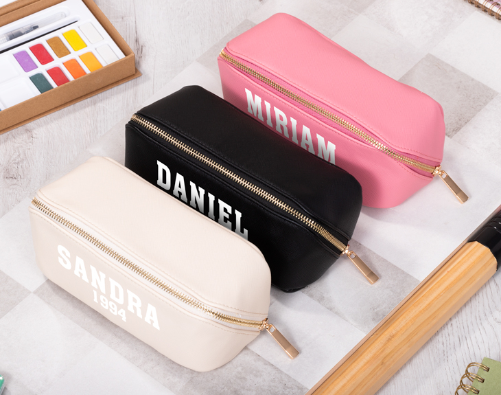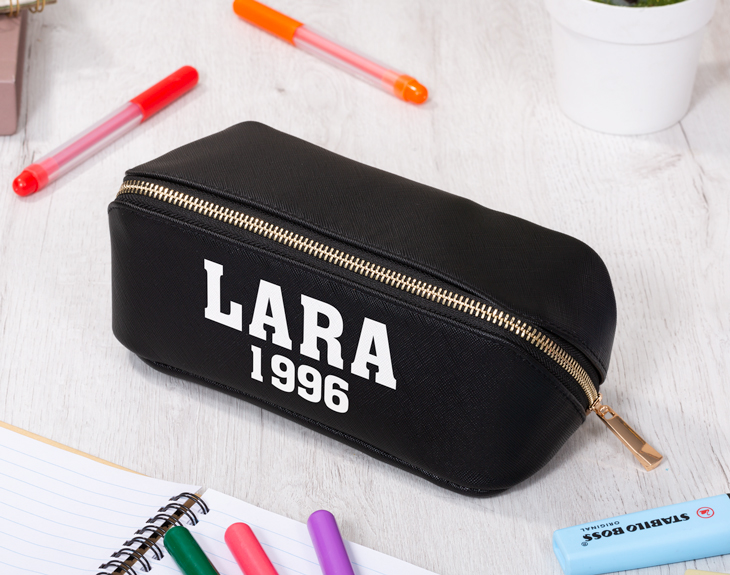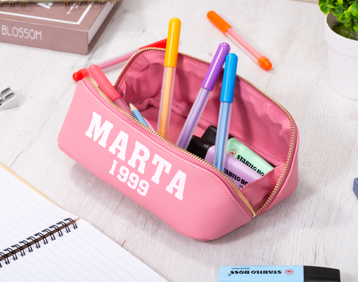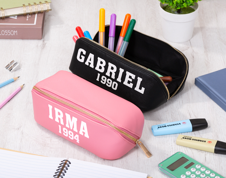 ¡La vuelta al cole ya está aquí! Es el momento de ponerse al día, volver a la rutina, reencontrarse con los compañeros y profes de clase. Si quieres animar a ese estudiante con su vuelta a las clases, tenemos algo que le encantará. Se trata de nuestro estuche elegante personalizado con diseño "College". Este estuche es ideal para llevar todo el material escolar, como los bolígrafos, rotuladores, goma de borrar, lápices... ¡Cabe de todo! Está disponible en dos colores: rosa o negro. ¡Elige tu favorito! Además, lo mejor que tiene es que es personalizable, podrás escribir el nombre que quieras. Personalizar este estuche elegante es muy sencillo. El primer paso a seguir consiste en añadir el producto al carrito y entrar al área de personalización. Una vez ahí, ya puedes escribir el nombre que tú quieras. Pronto estará perfecto y listo para regalar. ¡Será un original regalo para la vuelta al cole! - Dimensiones: 21 x 8 cm. - Material: 100 % poliuretano.
