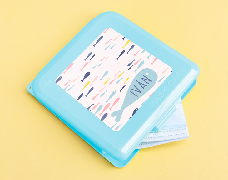 ¿Los pececitos están muy presentes en tu hogar? Si los pequeños de la casa no paran de hablar de animales, no paran de hacer preguntas y ya han pedido un pez como mascota, este diseño está pensado para ellos. Los peces no tienen nada que ver con las mascarillas y la seguridad del momento, pero sí que aportan un toque de originalidad y color a este estuche para mascarillas personalizado con el nombre que tú quieras. ¡Aprovecha el momento para darle una sorpresa a la princesa de la casa y enséñale a cuidar y mantener limpia la mascarilla! ¿Qué hace que sea un estuche Premium? Lo más guay que tiene este producto es que cuenta con un cierre de seguridad para garantizar su protección, así como con un agujero para poder poner tu propia cuerda y llevarlo colgado. De esta forma podrás engancharlo a la mochila o usarlo como una bandolera. Diseño, comodidad y seguridad. ¡Lo tiene todo! Medidas: 14 cm x 14 cm