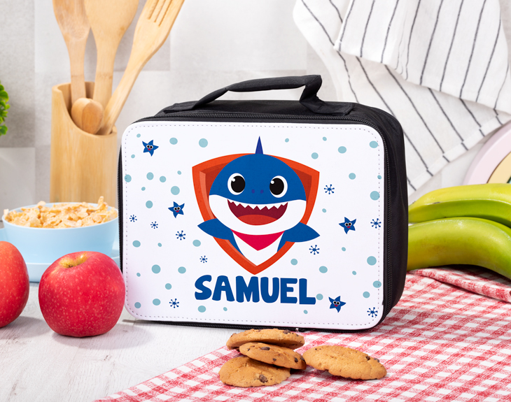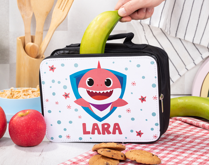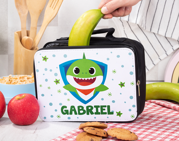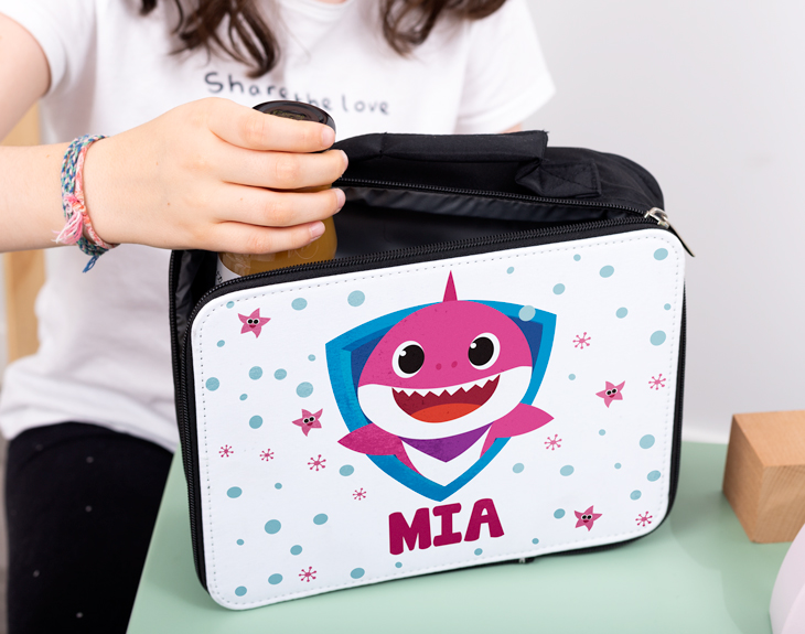 La bolsa para la merienda personalizada para esos niños que se pasan el día cantando la canción de Baby Shark. Si tu hija o hija es de esos peques que han visto mil veces el videoclip y aún así no se cansan de ponerlo una y otra vez, alucinará al ver esta lunchera con su nombre. El detalle perfecto para darle una gran sorpresa en su vuelta al cole...¡Así sentirá aún más emoción e ilusión por volver a clase y ver a todos sus amigos!. Además, es perfecto para que peuda llevar todos los días a clase su bocadillo, su fruta o sus zumitos...¡No se olvidará ni un día la merienda! También es perfecta para llevar a sus actividades extraescolares, así cuando termine sus clases podrá recuperar fuerzas con un rico tentempié. Imagínate la ilusión que le hará tener un regalo original así de especial...¡Seguro que le encanta! Medidas: 24 x 8 x 7 cm.