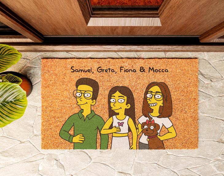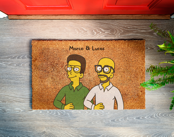 No hay nada como un buen capítulo de Los Simpson en tu sofá después de un largo día de trabajo o de clases. Si sois de los que podríais ver una y otra vez todos los capítulos y os sabéis ya las frases de memoria, no puede faltar en vuestra casa este original felpudo personalizado. Dale la bienvenida a todos tus invitados con el mensaje que quieras escrito con la icónica tipografía de la serie. Para que todo el mundo sepa quién vive dentro y lo fans que sois de las aventuras de Homer, les recibiréis en el hall de entrada vosotros mismos convertidos en unos personajes Simpson. A la hora de personalizarlo, tú mismo vas a poder crear desde cero tus personajes Simpson, con todos los detalles que quieras. Y para rematar este regalo tan guay, podrás escribir un texto en la parte superior del felpudo. ¡Quedará genial! Importante: tienes que tener en cuenta que este felpudo tiene fines decorativos, no es un producto de alto tránsito. Por tanto, si lo expones a condiciones climatológicas adversas o tiene un uso intenso su durabilidad puede reducirse Importante: Son felpudos de fibra de coco natural, por tanto pueden tener variaciones de color. Además, los detalles pueden no ser tan perceptibles como en una pantalla retroiluminada.