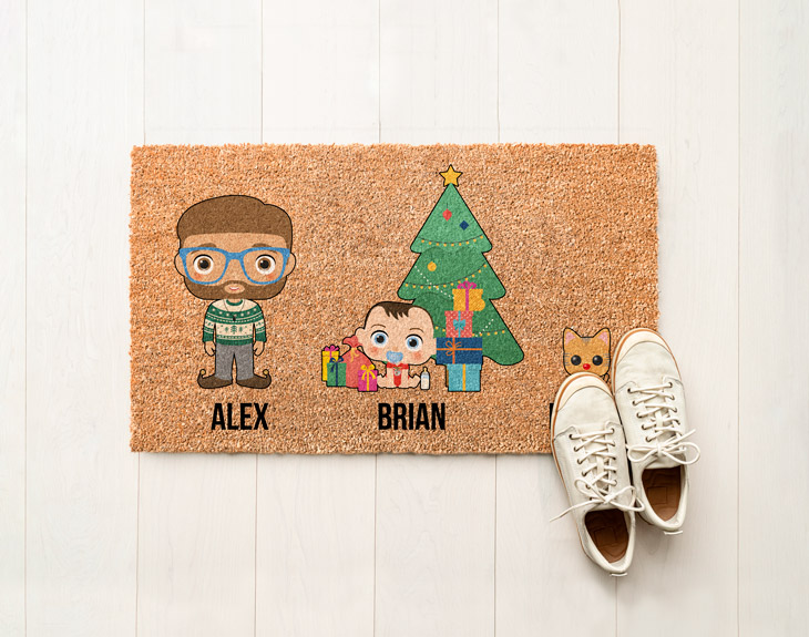 La Navidad es el momento más especial del año por una sencilla razón: la vuelta a casa. Da igual lo duro que haya sido el año o las cargas con las que vayas a empezar el siguiente. El hecho de entrar por esa puerta de tu hogar, sentir esa paz y el abrazo de los tuyos, y cenar el mejor menú del año es pura magia. Queremos darle un toque más especial a este momento tan esperado. ¡Imagina recibir a tus padres, tíos y primos con el elemento de decoración para el recibidor más sorprendente que verán! Se quedarán boquiabiertos con tu felpudo de coco personalizado a todo color. Los regalos son otro de esos momentos especiales de las fiestas. ¡Ver las caras de intriga e ilusión de los tuyos no tiene precio! Sabemos que cualquier detalle les encantará, pero imagina su sorpresa cuando se vean a ellos mismos contigo diseñados de la manera más divertida posible, como si de unos Tinoks se tratase. Atrévete a crear el mejor regalo navideño con nuestro felpudo con vuestros nombres y avatares personalizados. Diseña fácilmente a estos personajes rasgo a rasgo, añadiendo su tipo de pelo, sus zapatillas favoritas o cualquiera de nuestros atuendos navideños. ¡En todo momento verás lo bonito que queda tu familia Tinok! ¿Por qué regalar una foto de familia cuando puedes tener vuestro original retrato impreso sobre el material de fibra de coco de nuestro felpudo decorativo? En tan solo unos clics y en apenas 24-48 horas, podrás recibir en tu casa el mejor regalo original para Navidad y los Reyes Magos. Después de las vacaciones podrás presumir, ¡ya que nadie tendrá uno igual! Importante: nuestro equipo de personalización se encargará de ajustar la distribución de los personajes en el producto en función de su tamaño para que se vean lo mejor posible. Tienes que tener en cuenta que este felpudo tiene fines decorativos, no es un producto de alto tránsito. Por tanto, si lo expones a condiciones climatológicas adversas o tiene un uso intenso su durabilidad puede reducirse.