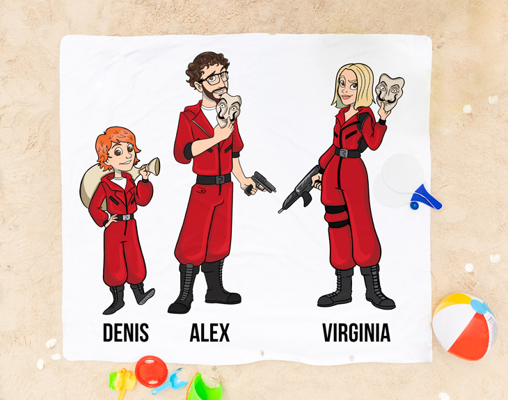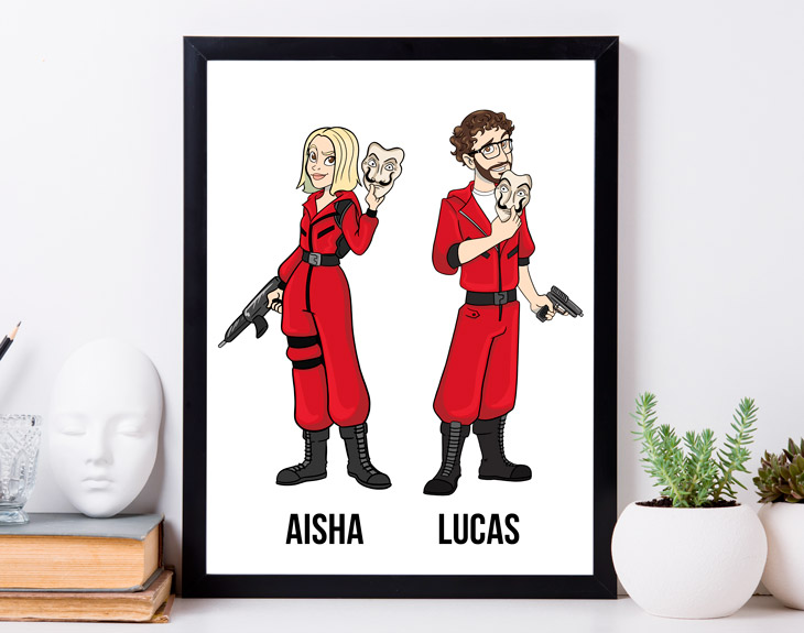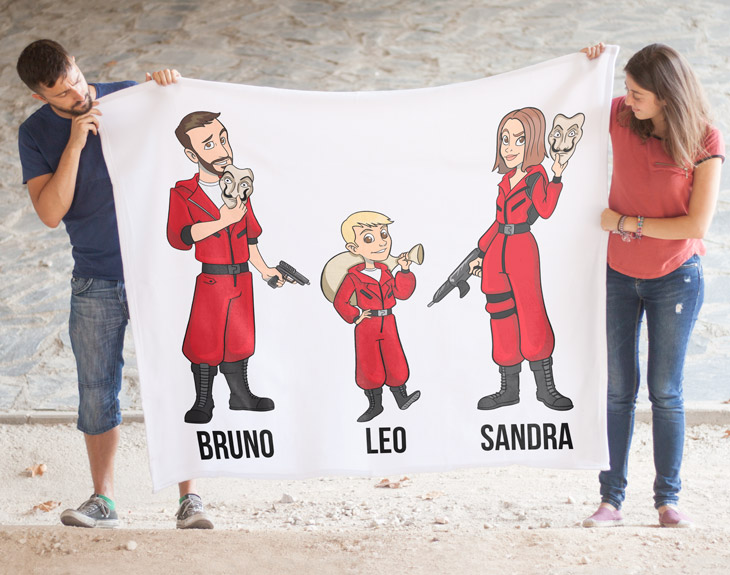 ¿Te encantaría vestirte con un mono rojo y una máscara de Dalí? El fenómeno en el que se ha convertido 'La casa de papel' ha hecho que millones de espectadores en todo el mundo siguiesen con lupa las aventuras y tragedias de la banda de El profesor. Con el paso de los años, se ha ido convirtiendo en una de las mejores series españolas de la historia de la televisión mundial. ¿Quién no ha querido convertirse alguna vez en un atracador más como Denver, Nairobi o Río? Todos estos personajes son míticos, y algunos son grandes símbolos de nuestra tele. Si siempre has querido formar parte de la banda de atracadores más famosa, este es tu momento. Gracias a este felpudo personalizado, te transformarás en un personaje más de la famosa serie. Con un disfraz de 'La casa de papel', tu personaje parecerá un miembro más del reparto de la serie. Este regalo original quedará de lujo para recibir a las visitas, gracias a estas arrebatadoras versiones de vosotros mismos. ¡Tenemos más de 500 personajes entre los que escoger! Importante: nuestro equipo de personalización se encargará de ajustar la distribución de los personajes en el producto en función de su tamaño para que se vean lo mejor posible. Tienes que tener en cuenta que este felpudo tiene fines decorativos, no es un producto de alto tránsito. Por tanto, si lo expones a condiciones climatológicas adversas o tiene un uso intenso su durabilidad puede reducirse. Importante: Son felpudos de fibra de coco natural, por tanto pueden tener variaciones de color. Además, los detalles pueden no ser tan perceptibles como en una pantalla retroiluminada.