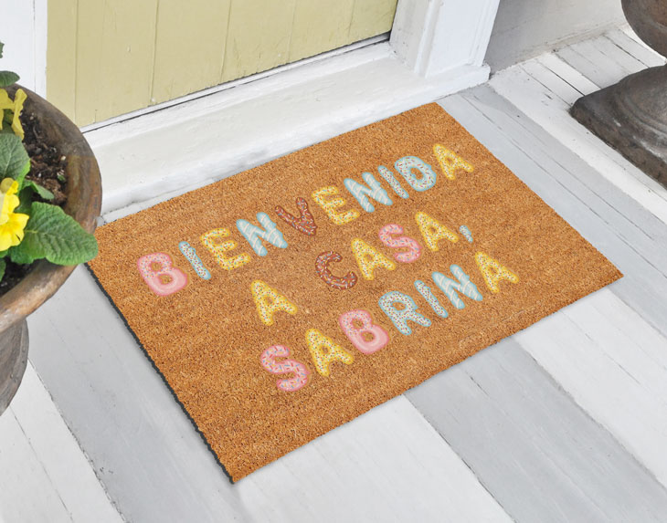 Si tu casa es el hogar de las personas más dulces del planeta, es hora de decírselo al mundo entero con nuestro precioso felpudo personalizado Letras Donuts. La forma más adorable y deliciosa de dar la bienvenida a tus visitas. Si los donuts y los dulces son tu pasión, seguro que el diseño de este felpudo personalizado te encantará, ya que está basado en deliciosos donuts de colores y sabores. Cada donut toma en esta ocasión la forma de una letra, para componer el nombre o mensaje que desees en tu flamante y nuevo felpudo de casa. Un detalle que dará personalidad a tu recibidor y que envidiarán todos los vecinos. Ya sea porque a tu mejor amigo le encanten los bollitos o porque es la dulzura de la casa, este felpudo personalizado encajará con esa persona a la que tanto quieres a la perfección. Un regalo de lo más divertido con el que alegrar su hogar y darle un toque tan personal y especial como él. Sorpréndele en su mudanza y seguro que no dejarás indiferente a nadie. Tienes que tener en cuenta que este felpudo tiene fines decorativos, no es un producto de alto tránsito. Por tanto, si lo expones a condiciones climatológicas adversas o tiene un uso intenso su durabilidad puede reducirse. Importante: nuestro equipo de personalización se encargará de ajustar la distribución de los personajes en el producto en función de su tamaño para que se vean lo mejor posible. Importante: Son felpudos de fibra de coco natural, por tanto pueden tener variaciones de color. Además, los detalles pueden no ser tan perceptibles como en una pantalla retroiluminada.